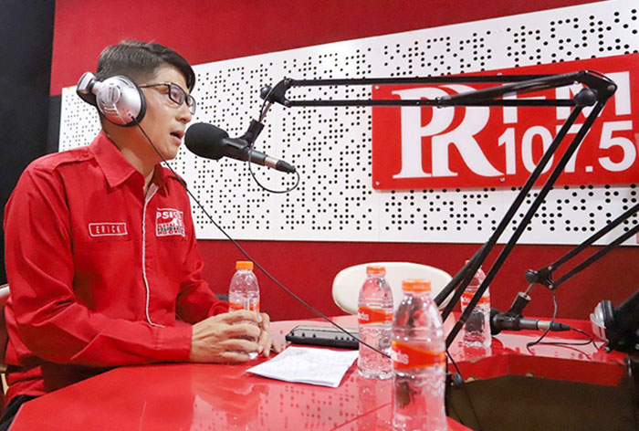 Sekretaris Komisi A DPRD Kota Bandung, Erick Darmadjaya, B.Sc., saat menjadi narasumber talk show OPSI di Radio PRFM Bandung, Selasa, (1/8/2023). Satria/Humpro DPRD Kota Bandung.