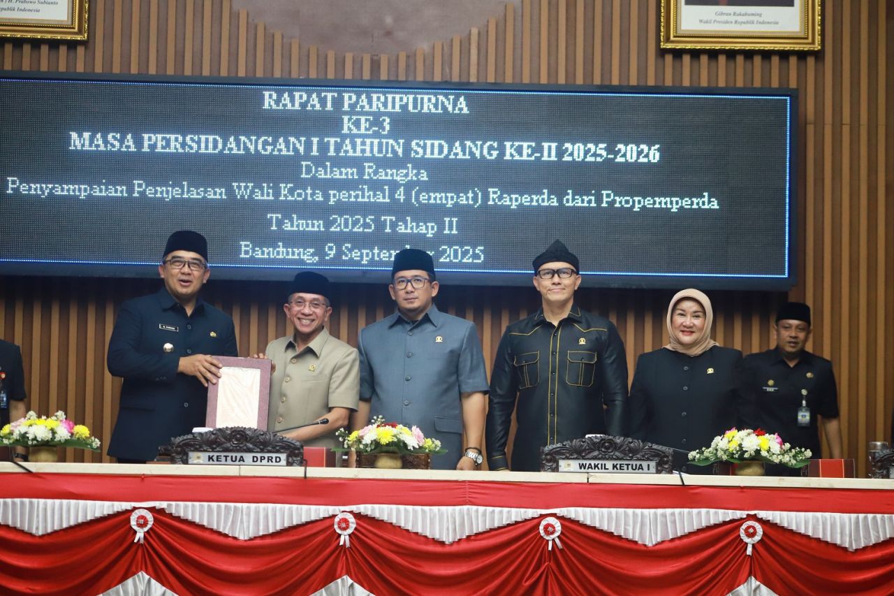 Bandung, sekilasjabar.co — DPRD Kota Bandung menerima empat usulan Raperda dari Propemperda Tahun 2025 Tahap II, dalam rapat paripurna yang digelar Selasa, 9 September 2025. Rapat paripurna ini dipimpin oleh Ketua DPRD Kota Bandung H. Asep Mulyadi, S.H., didampingi Wakil Ketua I DPRD Kota Bandung H. Toni Wijaya, S.E., S.H., Wakil Ketua II Dr. H. Edwin Senjaya, S.E., M.M., Wakil Ketua III Rieke Suryaningsih, S.H., serta dihadiri para Anggota DPRD Kota Bandung. Hadir dalam rapat paripurna itu, Wali Kota Bandung Muhammad Farhan, Sekda Kota Bandung Iskandar Zulkarnain, serta jajaran pimpinan OPD.