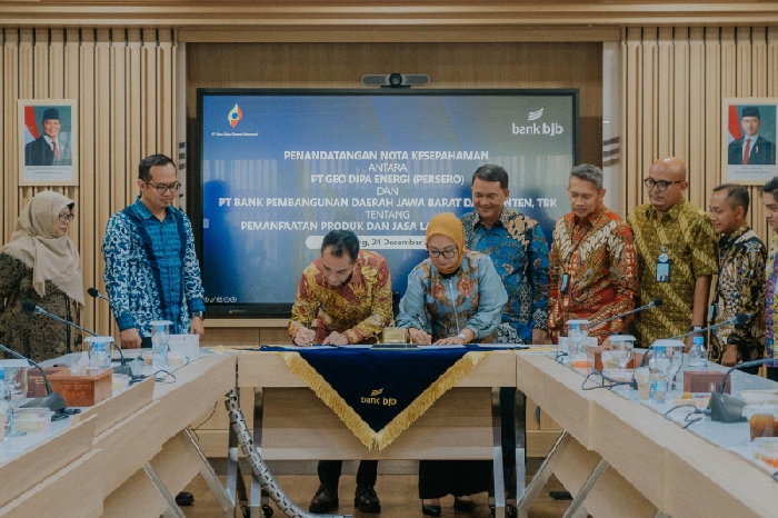 Penandatanganan MoU dilakukan Direktur Komersial dan UMKM bank bjb, Nancy Adistyasari dengan Direktur Keuangan, Manajemen Risiko, dan Umum PT Geo Dipa Energi, Hanif Osman, di Menara bank bjb, Bandung, Selasa 24 Desember 2024.