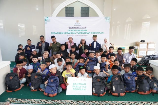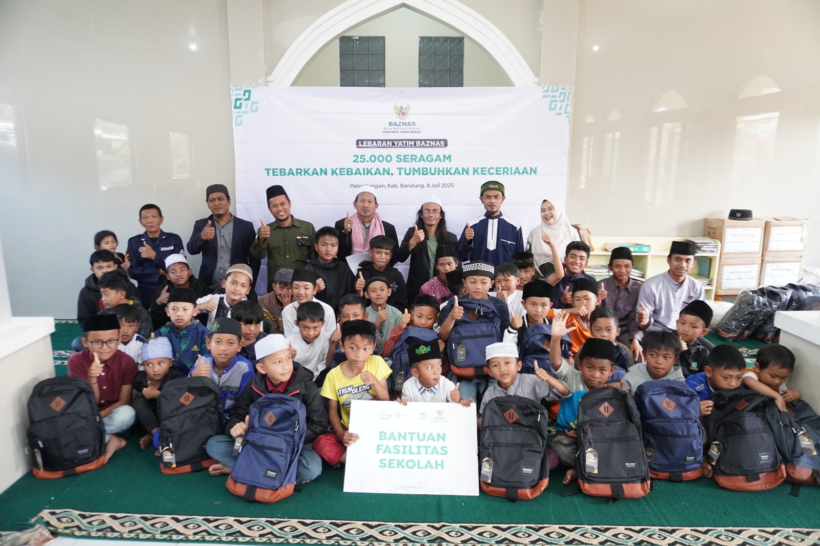 Kabupaten Bandung, sekilasjabar.co — Badan Amil Zakat Nasional (BAZNAS) Provinsi Jawa Barat menyalurkan bantuan kepada 56 anak yatim yang merupakan santri di Pesantren Tahfidz Quran Al Muqarrabun, Pangalengan, Kabupaten Bandung, Selasa (08/07/2025).