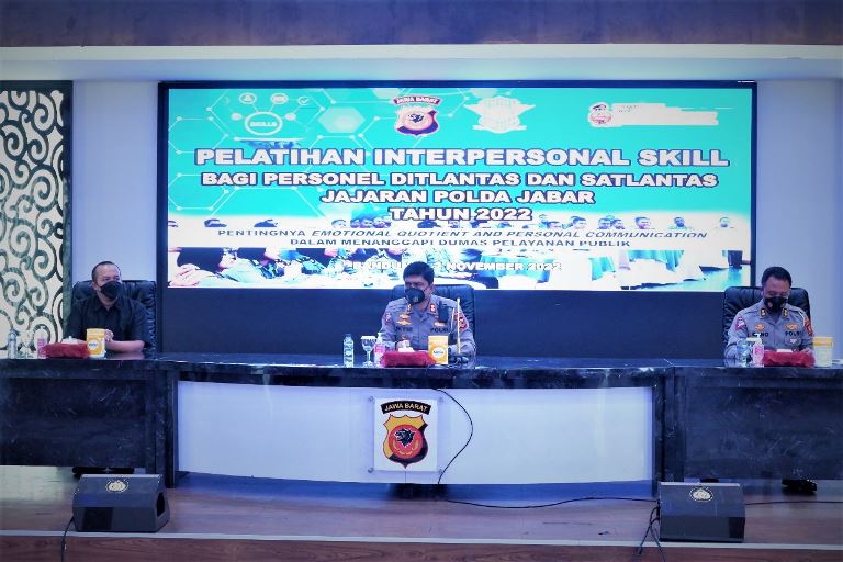 Bandung, sekilasjabar.co – Direktorat Lalu Lintas Kepolisian daerah Jawa Barat (Ditlantas Polda Jabar) Adakan Giat Latkatpuan Dalam Bentuk Inter Personal Skill dengan tema “Pentingnya Emotional Quotient dan Keterampilan Berkomunikasi Dalam Menghadapi Dumas Pelayanan Publik” bertempat di Gedung Aula ditlantas Polda Jabar, Rabu (02/11/2022).