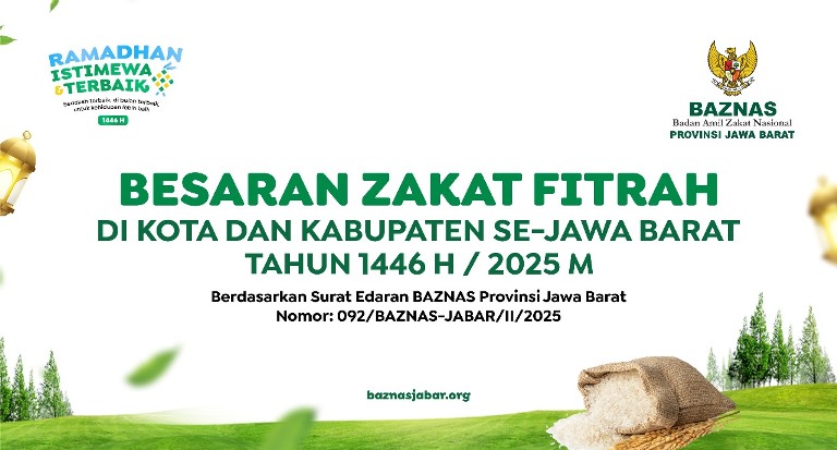 Berdasarkan Surat Edaran Baznas nomor 092/BAZNAS-JABAR/II/2025, besaran zakat fitrah di Jawa Barat sebagai berikut:
