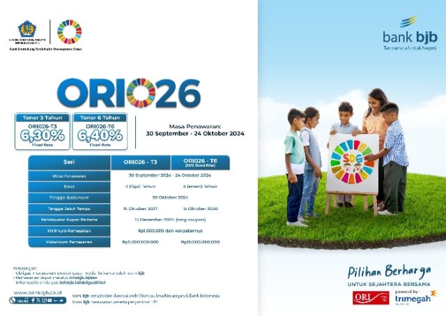 Jangan lewatkan kesempatan ini, segera investasikan dana Anda di ORI026 melalui bank bjb, dan nikmati imbal hasil tetap hingga 6,4% serta keamanan investasi yang terjamin. Informasi lebih lanjut tentang ORI026 dapat diakses melalui infobjb.id/obligasiritel.