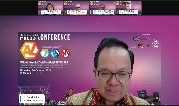 “Pameran PRO AVL Indonesia 2024, yang diselenggarakan untuk ketiga kalinya, kini hadir dengan skala yang lebih besar, diikuti oleh 90 perusahaan dari 10 negara. Acara ini akan menampilkan teknologi mutakhir serta peralatan terbaru yang inovatif untuk industri audio, visual, lighting, dan musik, dengan target kehadiran 5.000 pengunjung selama tiga hari pelaksanaannya,” terang Daud D Salim, saat konferensi pers melalui zoom, Kamis 24 Oktober 2024.