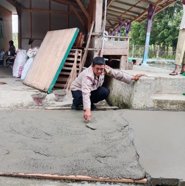 Beranda TNI/Polri Mantap, Aksi Polisi Bantu Warga Perbaiki Jalan Gang di Desa Leuwikujang