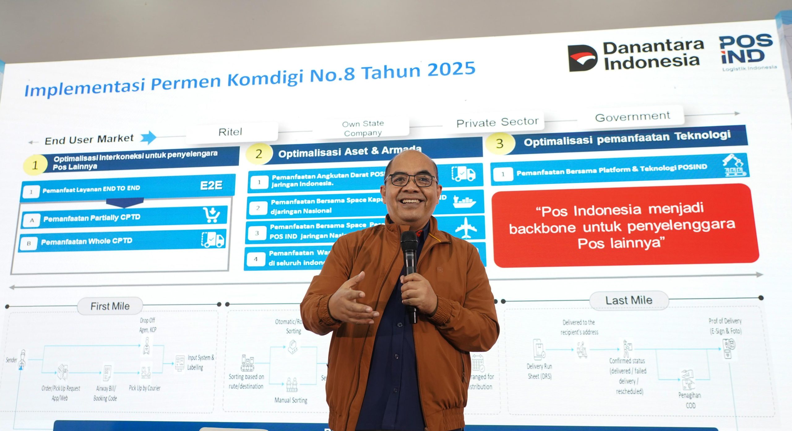 Direktur Business Development & Portfolio Management Pos Indonesia Prasabri Pesti mengatakan, strategi Pos Indonesia memperkuat posisinya sebagai backbone layanan pos dan logistik nasional merupakan bentuk dan dukungan strategis perusahaan terhadap Permen Komunikasi dan Digital No. 8 Tahun 2025, yang mendorong transformasi digital, efisiensi operasional, serta pemerataan layanan logistik hingga ke pelosok Indonesia.