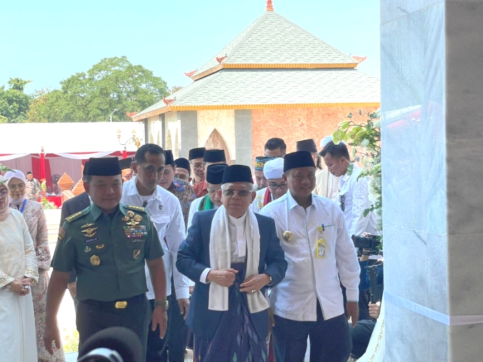 “Saya senang melihat arsitektur bangunan masjid ini yang mengedepankan budaya lokal Cirebon,” ucap Wapres RI