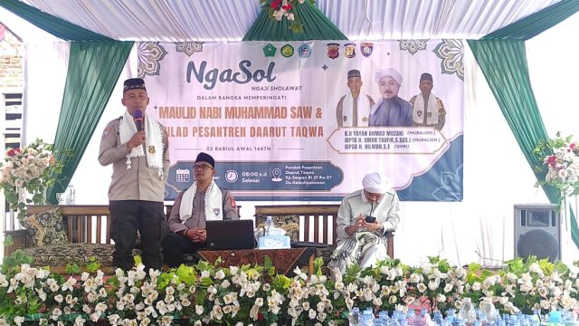 Garut, sekilasjabar.co – Dalam rangka memperingati Maulid Nabi Muhammad SAW dan Milad Pondok Pesantren Daarut Taqwa, Sat Binmas Polres Garut menyelenggarakan kegiatan NGASOL (Ngaji dan Sholawat bersama Polisi) di Ponpes Daarut Taqwa, Kampung Sapaan, Desa Galihpakuwon, Kecamatan Bl. Limbangan, Kabupaten Garut, pada Selasa (16/9/2025).