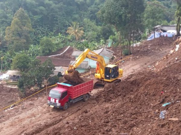 Selain pencarian, Polri bersama tim SAR melaksanakan kegiatan pengalihan tanah longsoran ke tempat lain sebagai salah satu upaya pencarian dilokasi Cijedil, Rabu (7/12/2022).