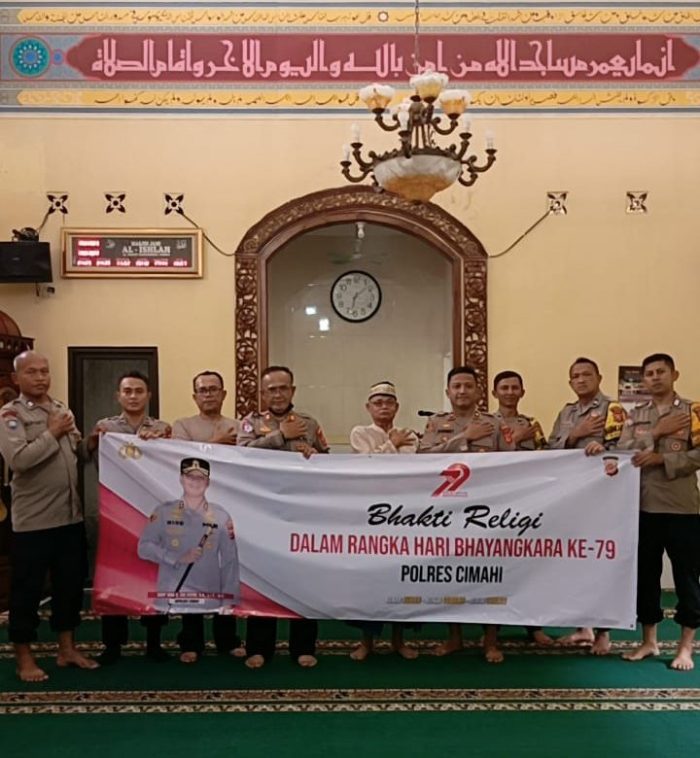CIMAHI, sekilasjabar.co – Sambut Hari Bhayangkara ke-79, Polsek Cimahi lakukan sejumlah kegiatan bakti sosial di wilayah binaan, salah satunya dengan melakukan bersih-bersih tempat ibadah di Mesjid Al-Ishlah di Jalan Encep Kartawiria, Kel. Citeureup, Kecamatan Cimahi Utara dan menyerahkan bantuan kepada marbot.