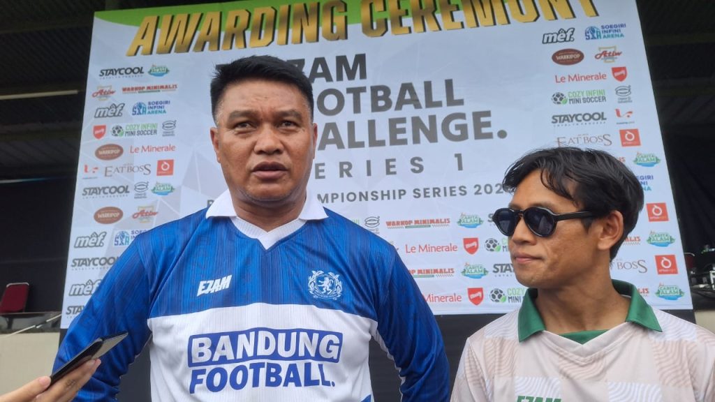 Mantan pemain Persib Bandung dan pembina E7AM Football Challenge Series 1 2026, Yadi Mulyadi (kiri). (Fifi Nofita)