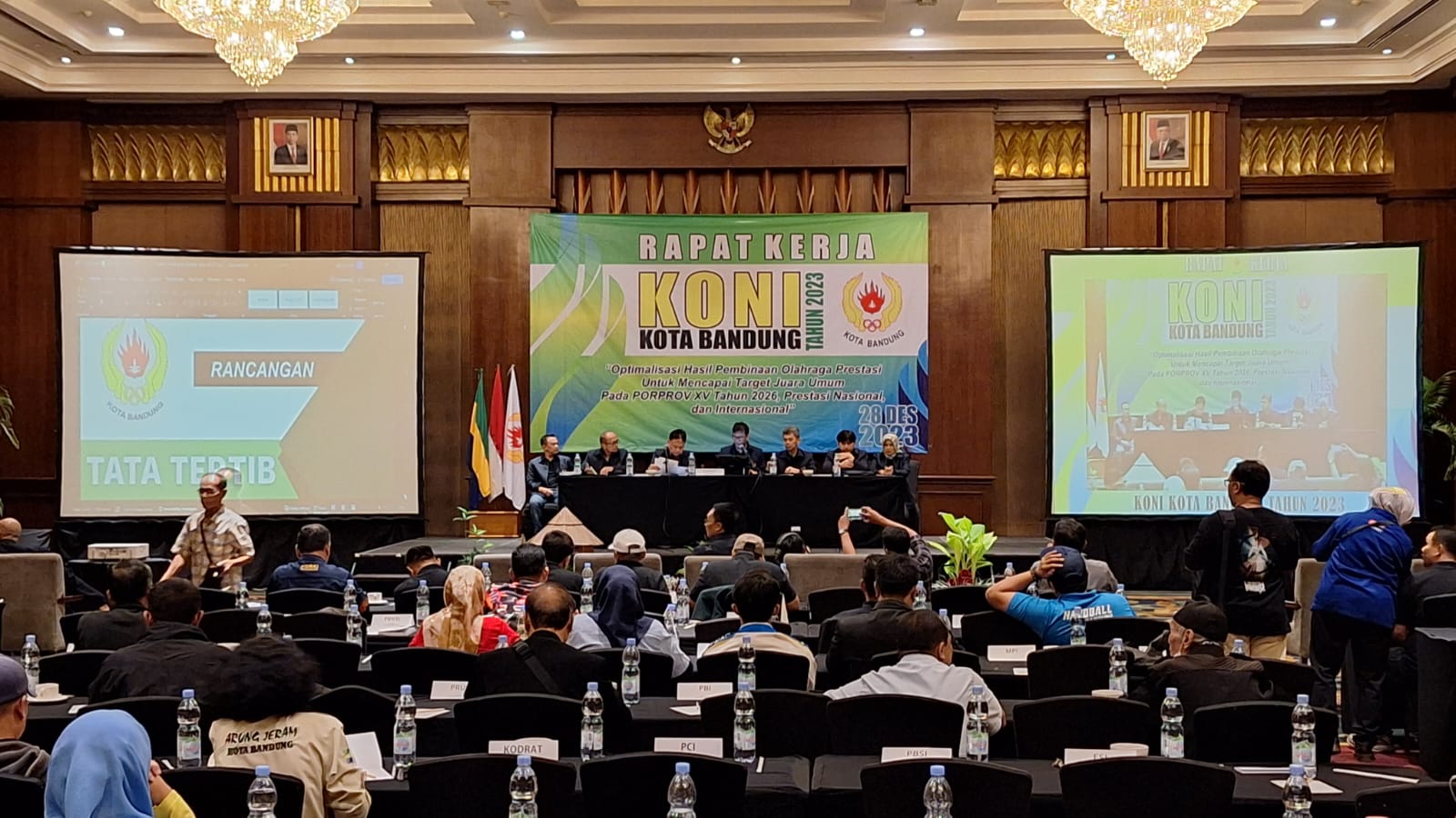 Bandung, sekilasjabar.co – KONI Kota Bandung menggelar Rapat Kerja (Raker) tahun 2023 di ballroom hotel el Royal, Jalan Merdeka Kota Bandung, Kamis (28/12/2023).