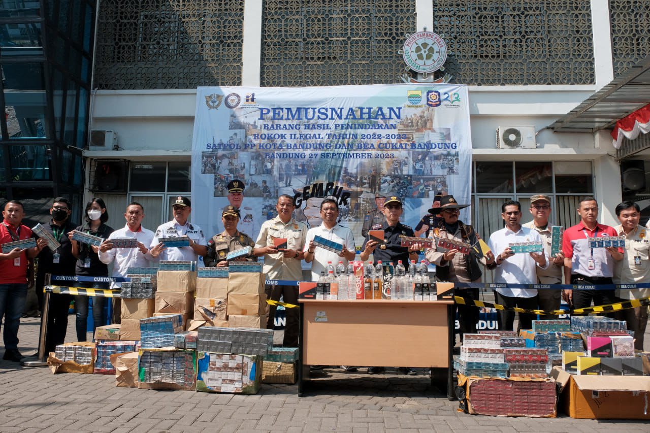 Acara pemusnahan secara simbolis dilakukan di lapangan parkir Kantor Satpol PP Kota Bandung bersama-sama oleh Bea Cukai, Kementerian Keuangan, Satpol PP seluruh Bandung Raya dan para tamu undangan. ***