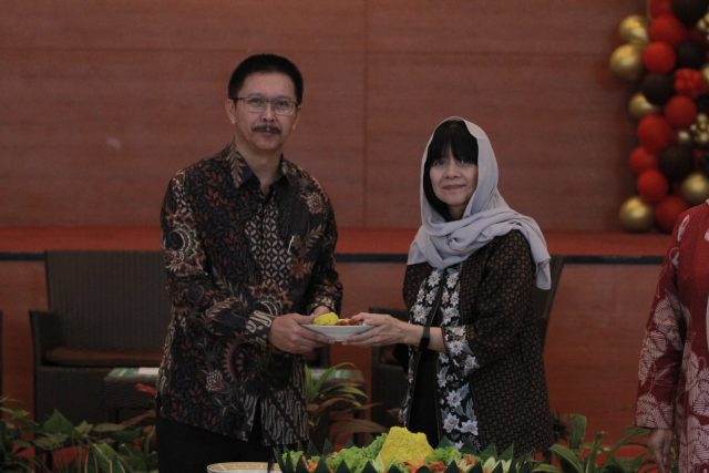 Acara kemudian dilanjutkan dengan prosesi pemotongan tumpeng sebagai simbol rasa syukur. Pemotongan dilakukan oleh Rektor USB YPKP bersama Sekretaris Pengurus YPKP, Dra. Femy Nazar, didampingi para wakil rektor.