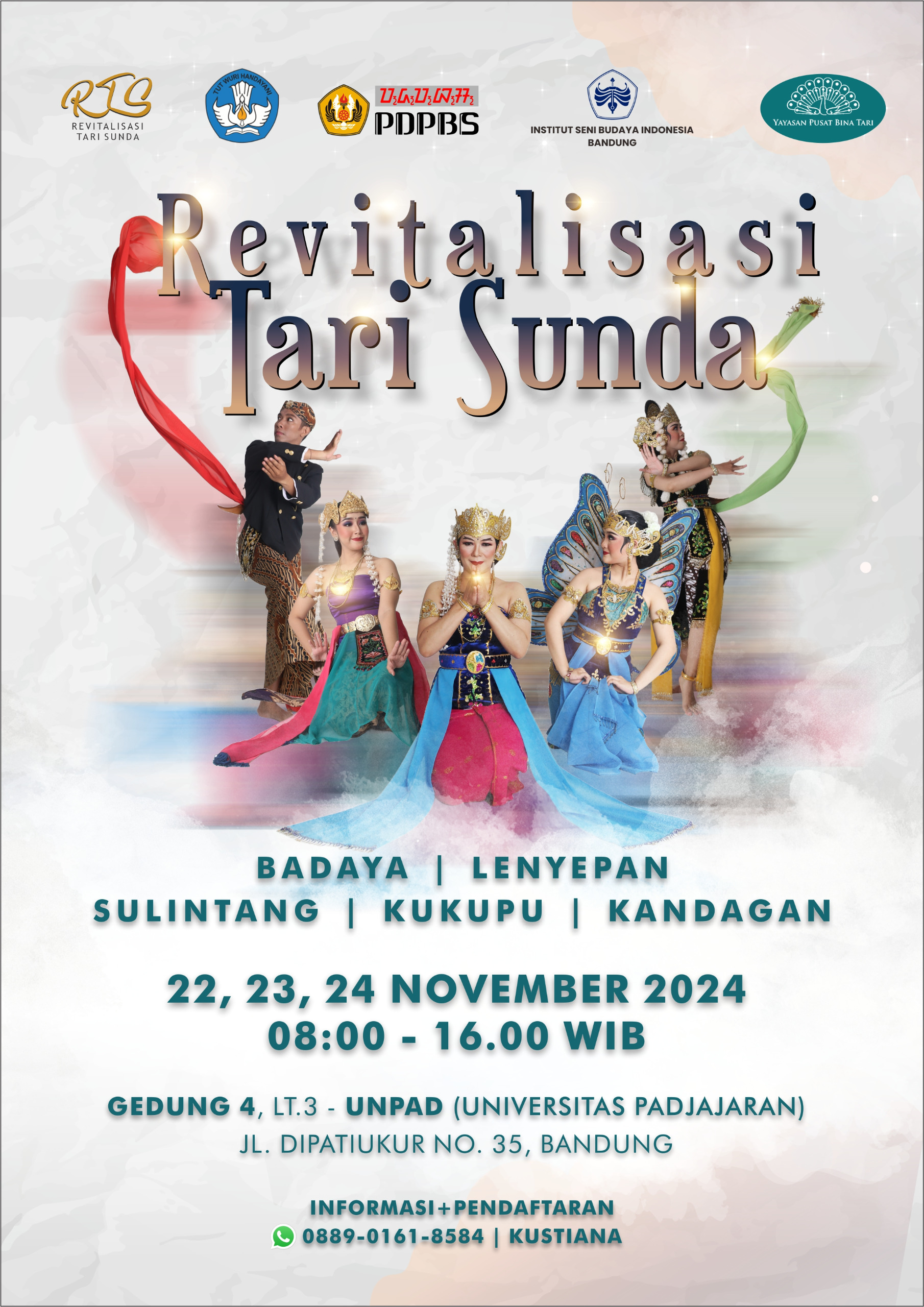 Bandung, sekilasjabar.co – Universitas Padjadjaran (Unpad) akan melaksanakan Workshop Revitalisasi Tari Sunda pada Jumat-Minggu, 22-24 November 2024 bertempat di Unpad kampus Dipatiukur, Kota Bandung. Workshop ini mengambil materi Tari Lenyepan, Tari Badaya Wirahmasari, Tari Kukupu, Tari Sulintang dan Tari Kandagan.